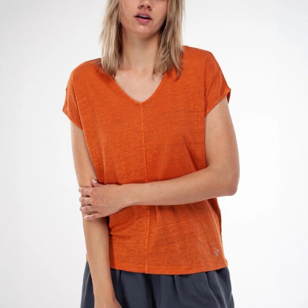 Alma & Lovis · Leinen V-Neck Bio T-Shirt · Pink
