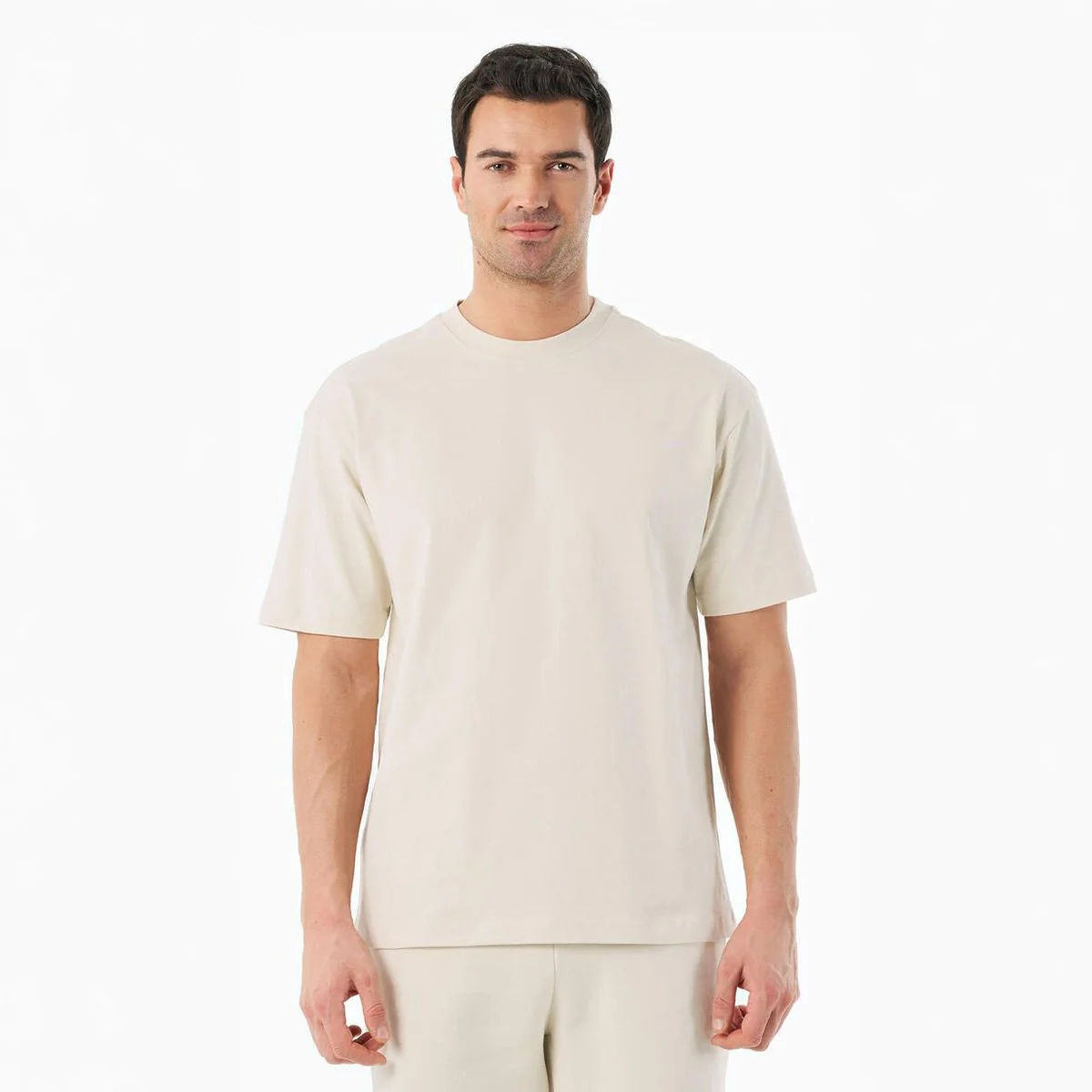 Der Schnitt ist locker und gerade und sorgt für eine entspannte Silhouette. Die leicht weite Passform, die klassischen Set-In Ärmel und der Rundhalsausschnitt schaffen eine klare Form, die für viele Körpertypen funktioniert. Dadurch entsteht ein unkompliziertes Basic-Shirt, das Komfort und Natürlichkeit verbindet.