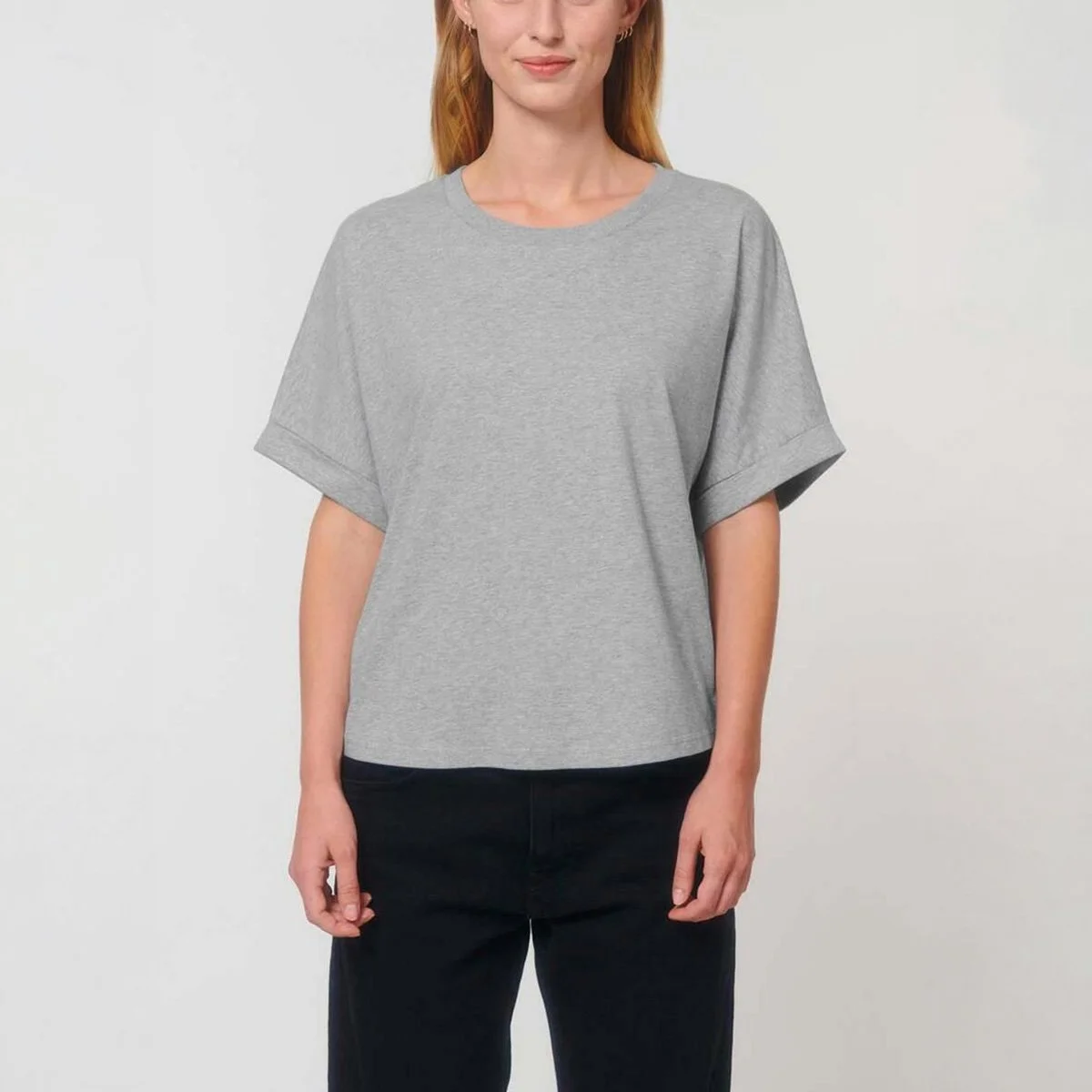 Dieses Oversize T-Shirt in Grau meliert verbindet eine ruhige, zeitlose Farbe mit einer lässigen Silhouette. Der melierte Grauton wirkt weich und modern zugleich und lässt sich vielseitig kombinieren – von Jeans über Stoffhosen bis zu minimalistischen Alltagslooks.